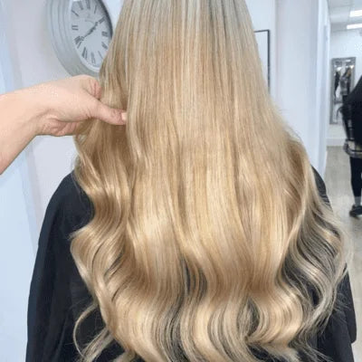 Schauen Sie sich unseren vollständigen Pflegeführer an here Ausführlichere Anweisungen zur Pflege Ihrer Haarverlängerungen.