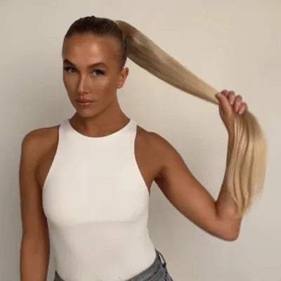 Introducing the Straight Up Wraparound Ponytail. Combining straightforward application, ease of styling, and premium quality in three lavish lengths; your new updo will make Ariana green with envy.
