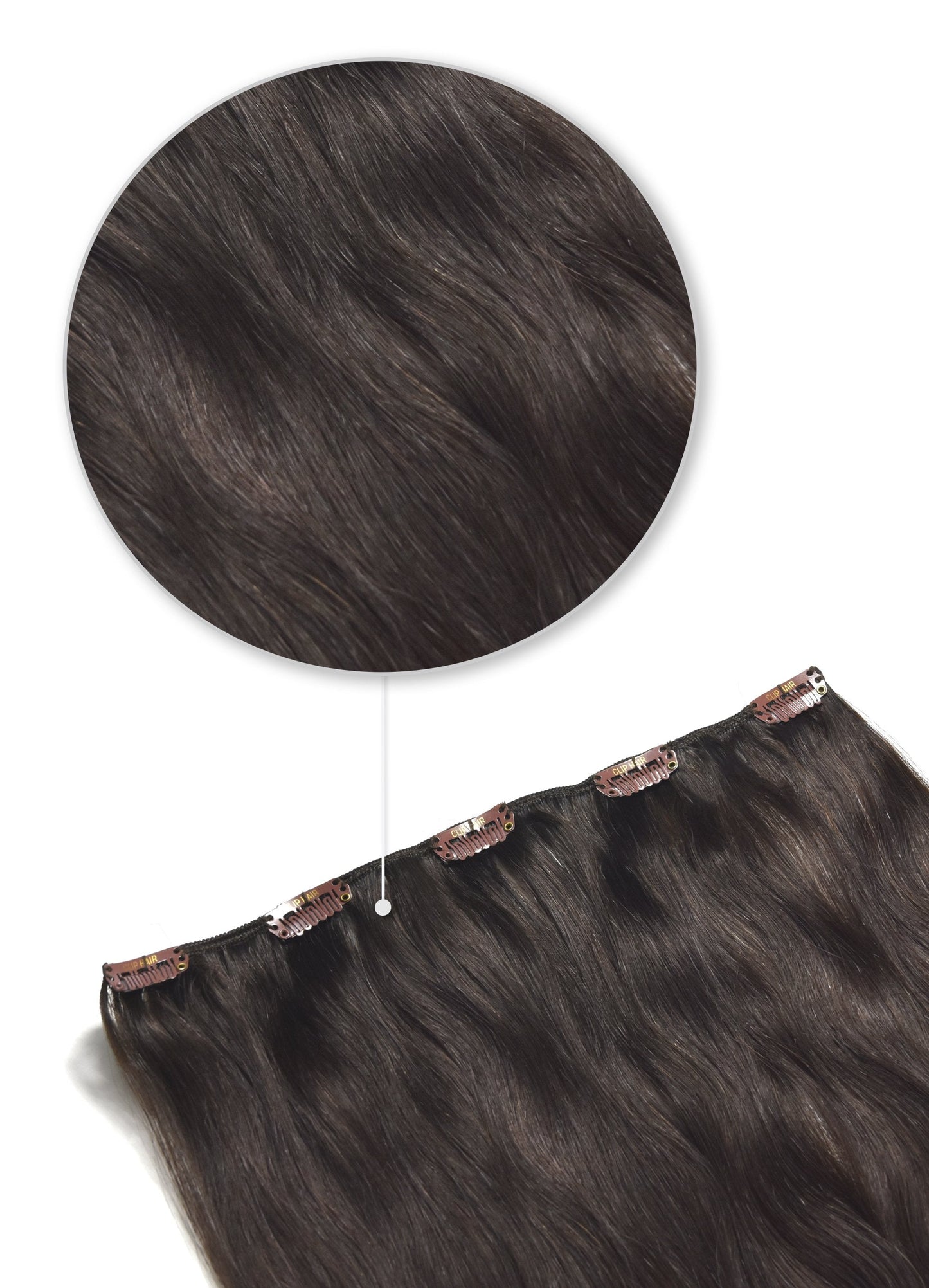 Darkest Brown (#2) One Piece Clip In Hair Extensions (Top-Up)
