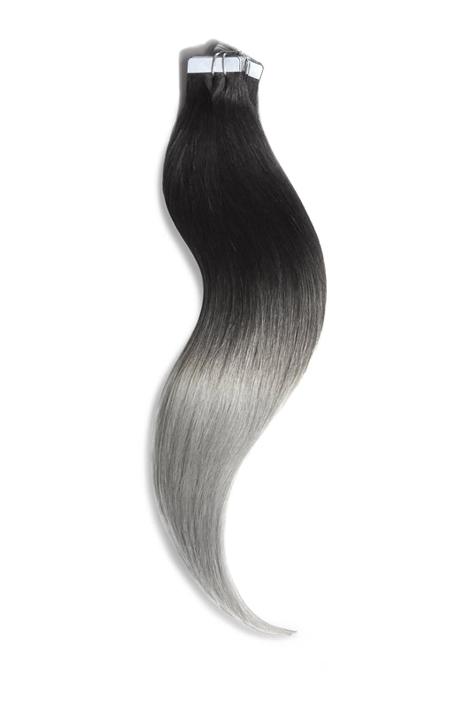 Tape in Remy Echthaarverlängerungen Silber Schwarz Ombre (#T1B/SG)
