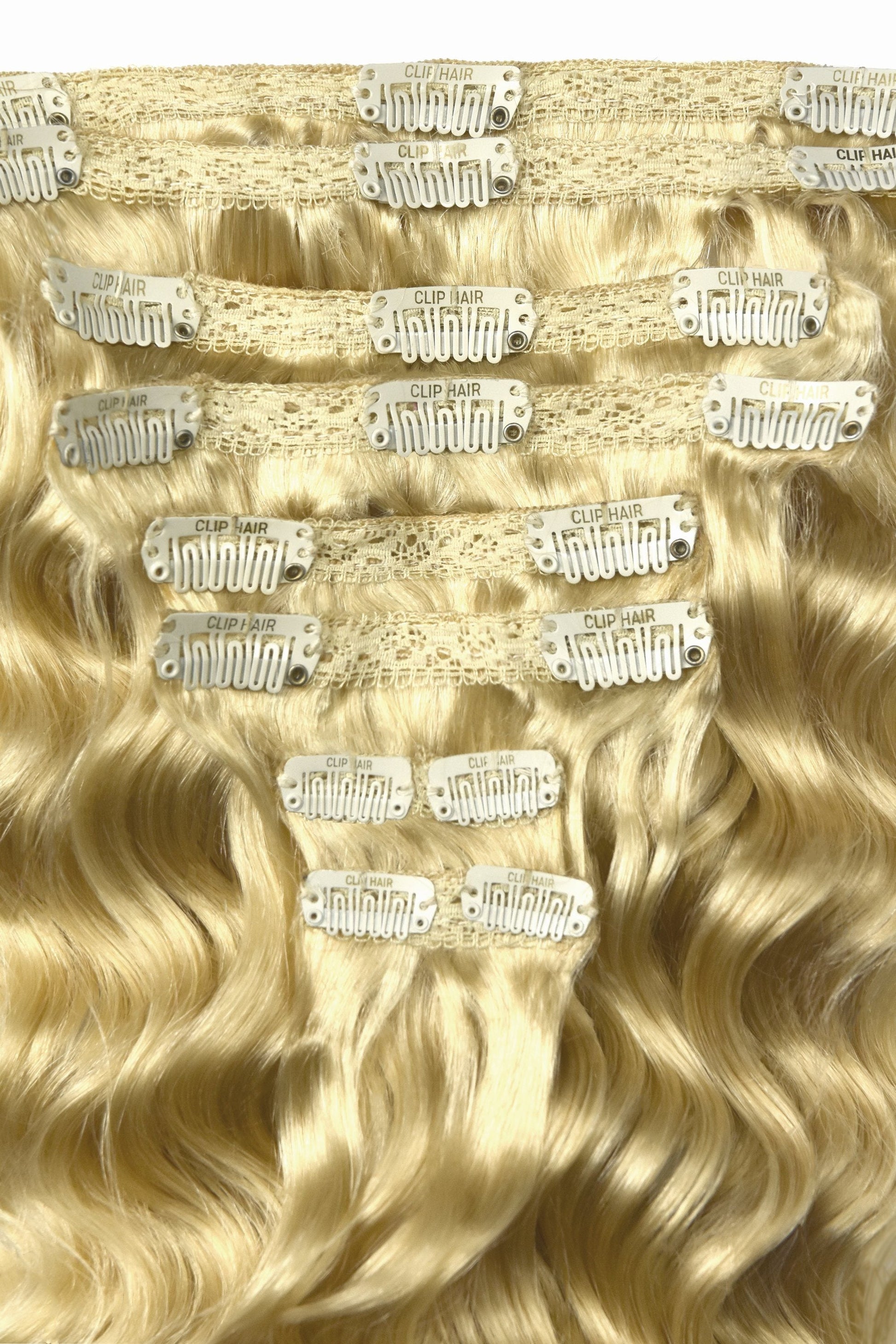 Lockige Clip-in-Echthaarverlängerungen – Bleichblond (#613)