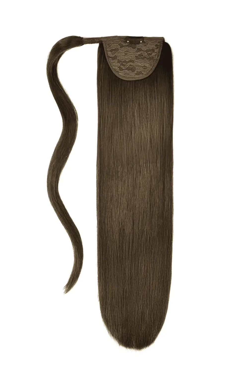 Wir präsentieren unseren am schnellsten verkauften Mittelbraun (#4) gerader, um den Pferdeschwanz gewickelter Zopf in drei üppig dichte Längen für jeden Haartyp. Mit integrierten Kämmen, die unter Ihr Haargummi greifen, und Klettverschlüssen, die Ihren perfekten Pferdeschwanz fest an Ort und Stelle halten, könnte das Anbringen unseres mittelbraunen Wrap Around-Pferdeschwanzes nicht einfacher sein.