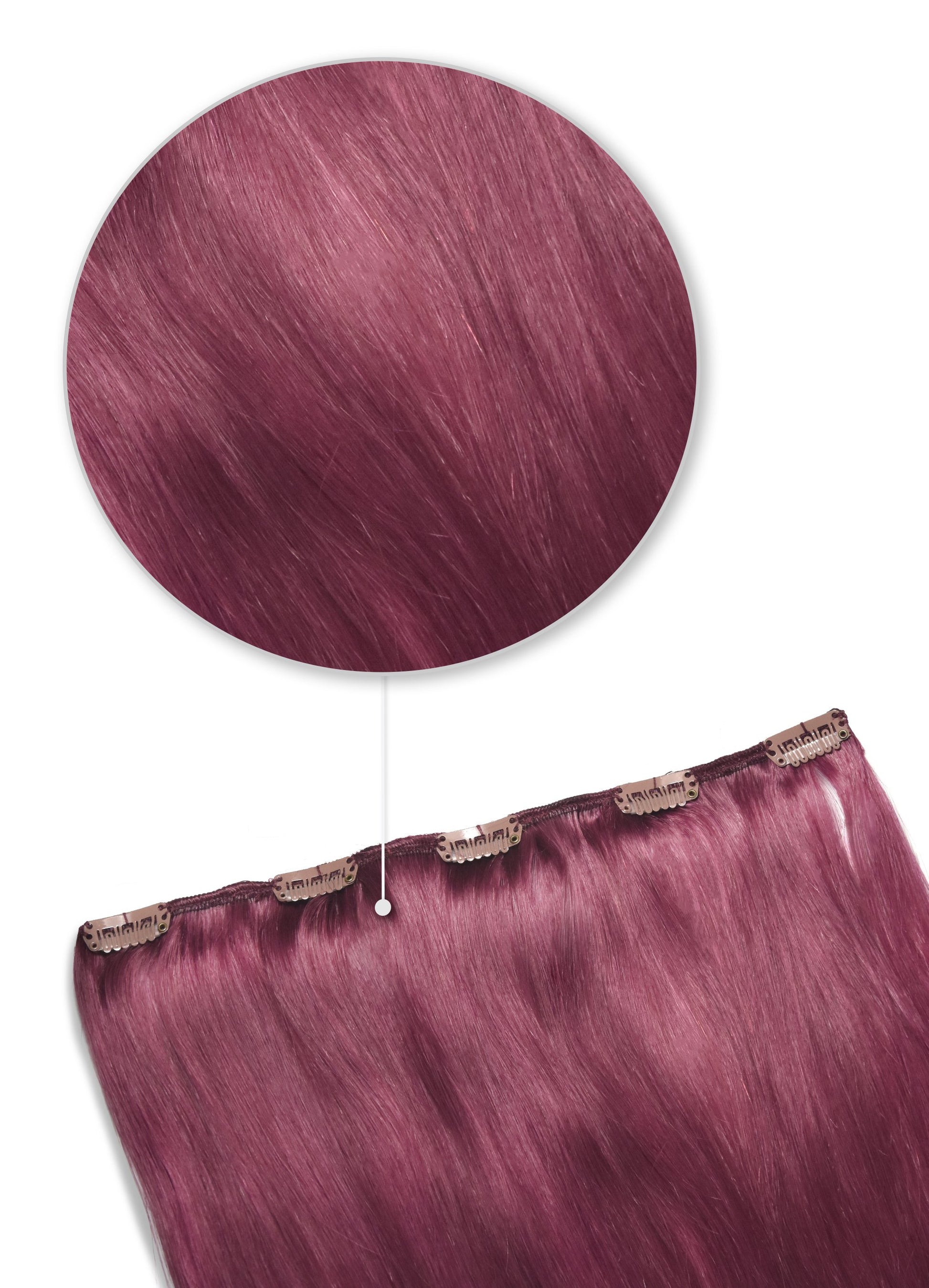 Einteilige Clip-in-Haarverlängerung in Pflaume/Kirschrot (#530).