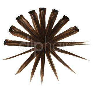 Quad Wefted Remy Clip in One Piece Human Hair Extensions - Light Auburn (#30)