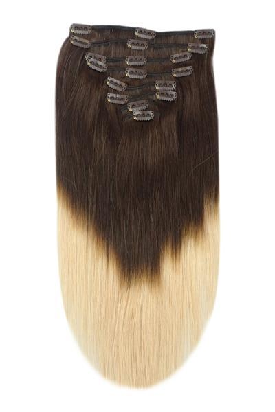 Extensions de cheveux humains Remy à clips double trame pleine tête - Ombre miel expresso (#T2/27)