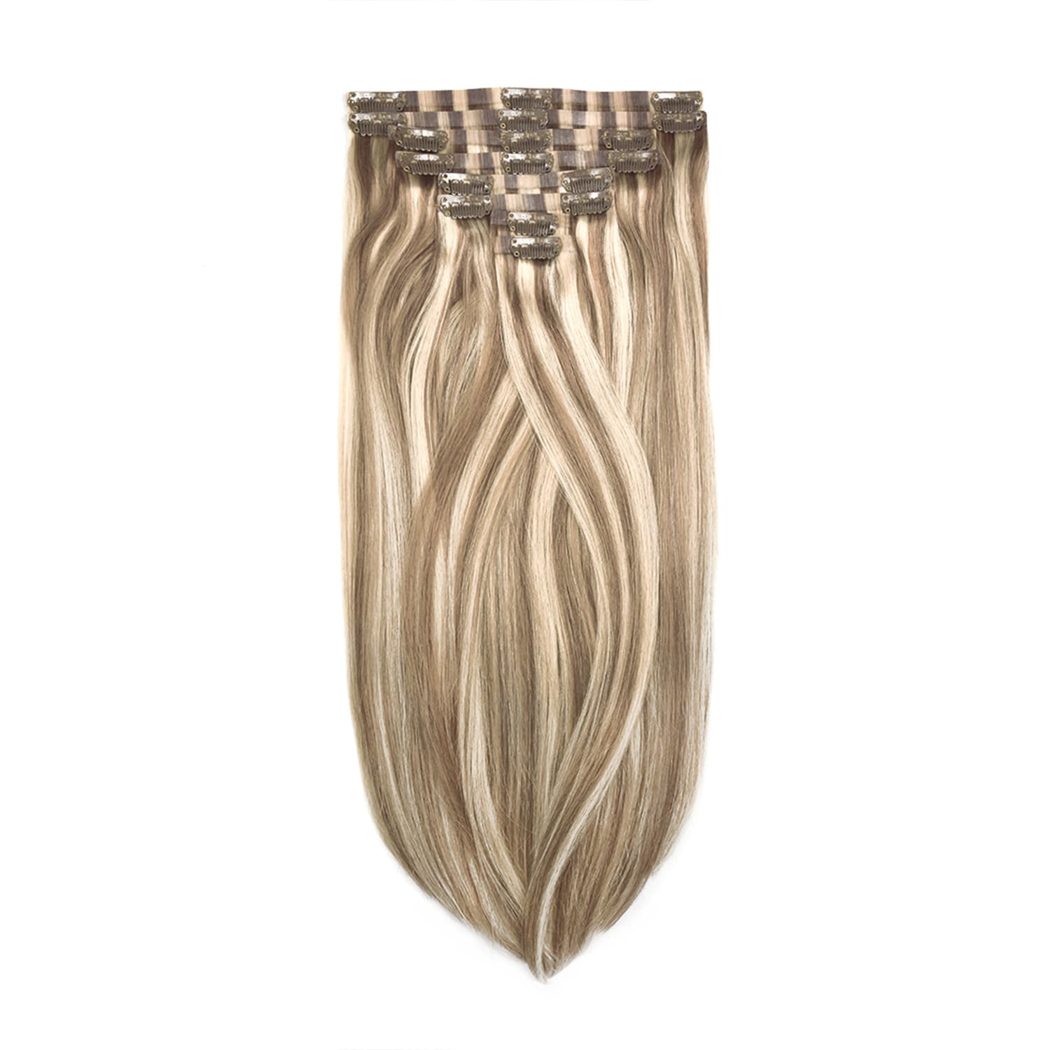 Ils sont livrés avec 8 pièces de largeurs différentes avec des clips doublés de silicone pré-attachés et constituent notre type d'extensions à clips le plus discret.