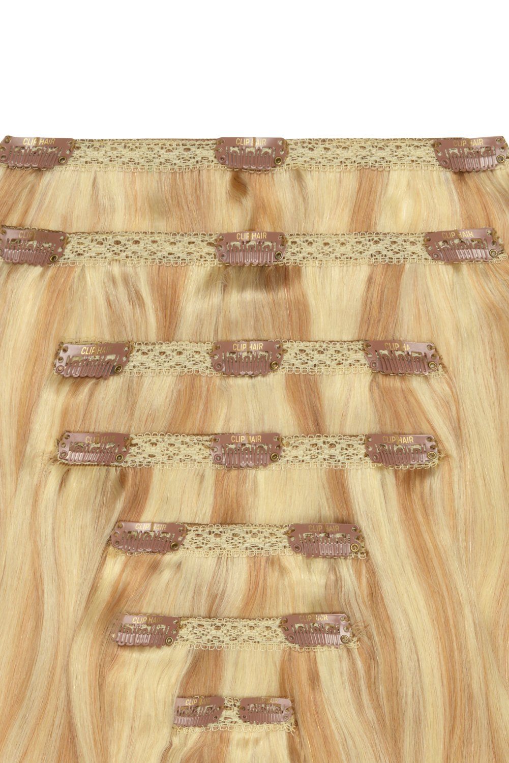 Double Wefted Full Head Remy Clip in Human Hair Extensions - Peaches & Cream (#27/613)