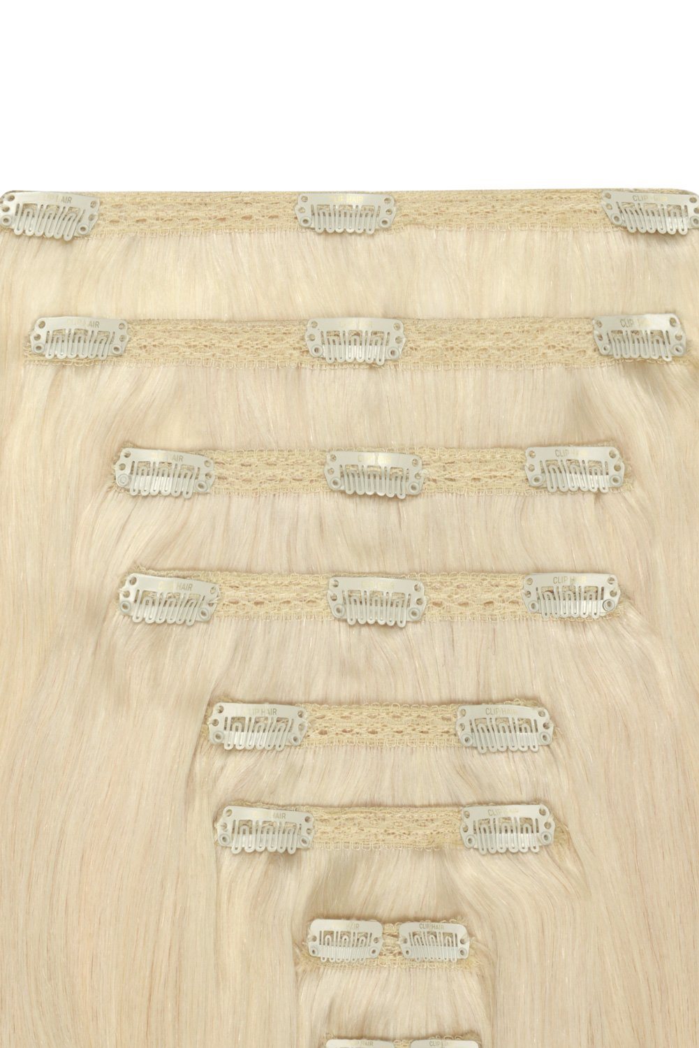 Double Wefted Full Head Remy Clip in Human Hair Extensions - Lightest Blonde (#60)